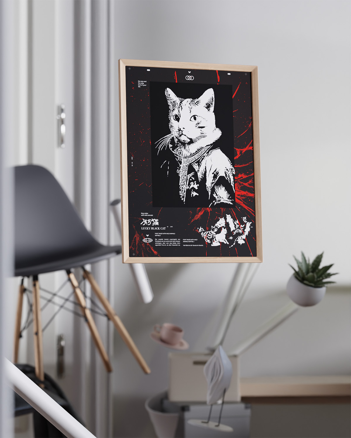 Aristokratie trifft Katze – Digitaldruck trifft Siebdruck. Hier treffen Welten aufeinander. mit einer prise Prosa und einem japanischen Titel. Alles was man an der Wand braucht.